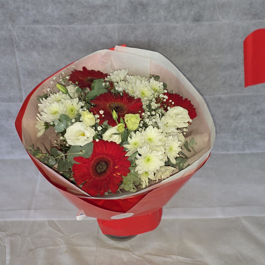 זר בגווני אדום לבן. צבעים קלאסיים להביע אהבה.